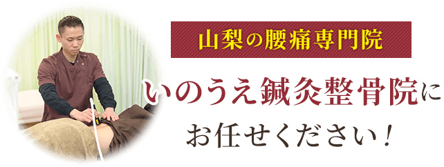 山梨県甲府市にある、いのうえ鍼灸整骨院です。当院腰痛専門ホームページへのアクセスありがとうございます。