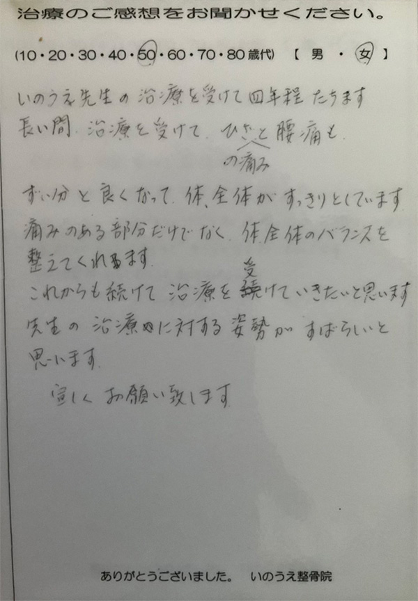 施術してもらった後は、非常に調子が良く助かっております!