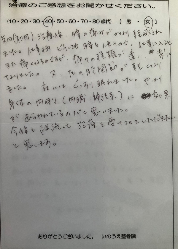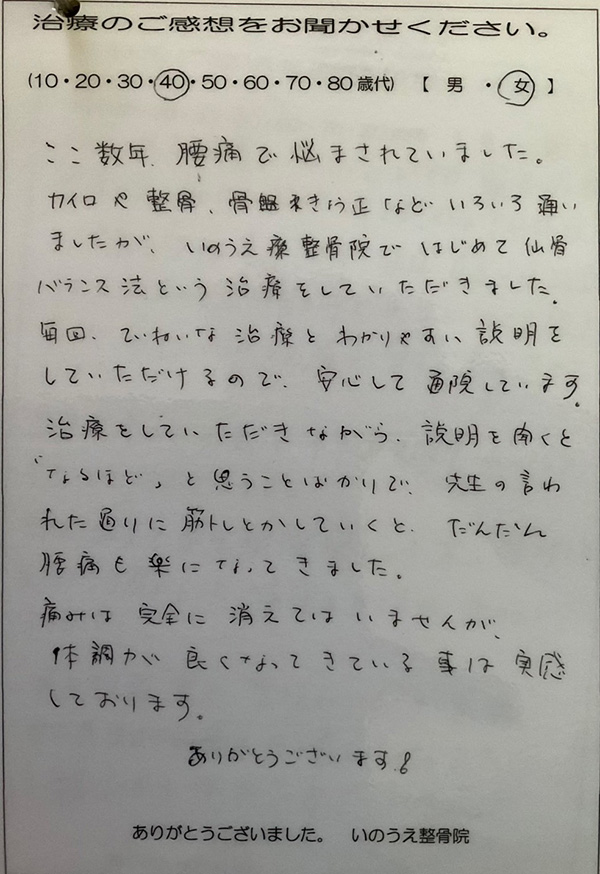 山梨 慢性腰痛 40代 女性